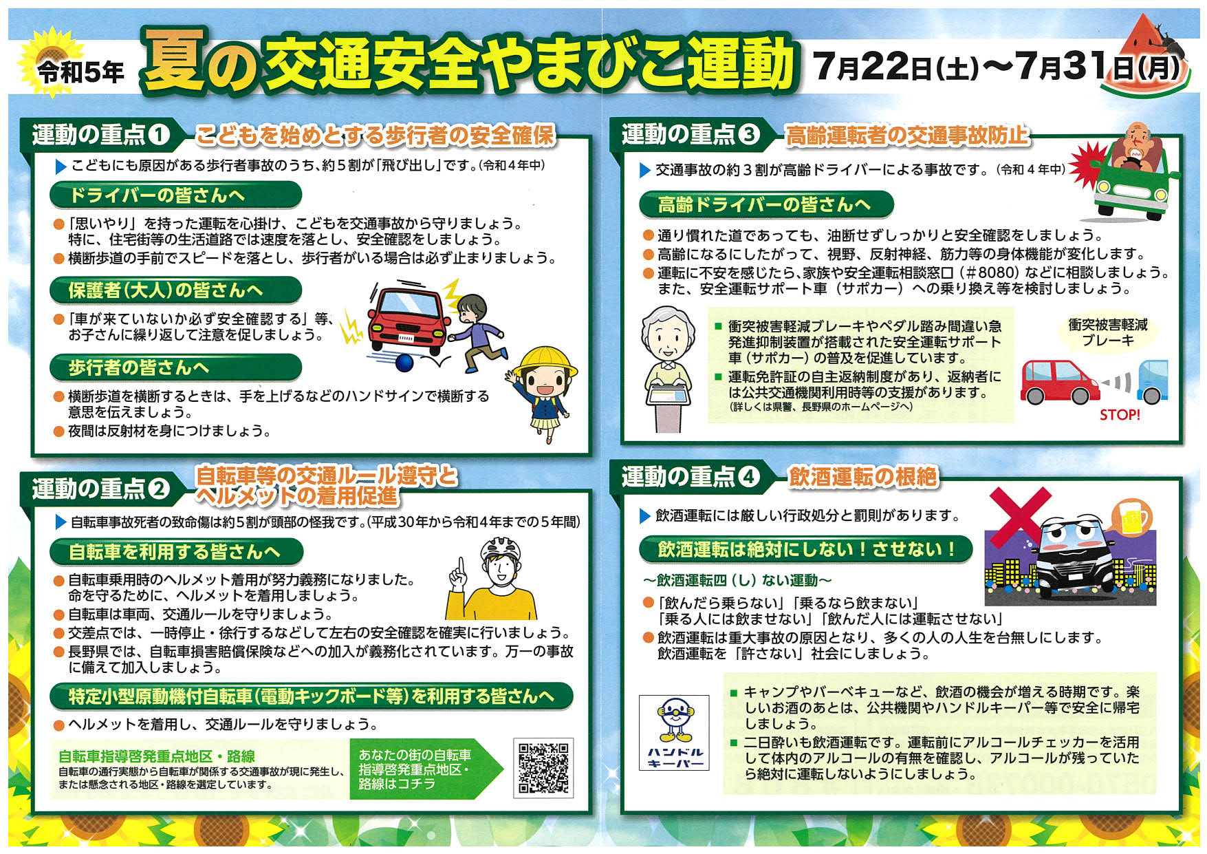 7月22日(土)から31日(月)まで、夏の交通安全やまびこ運動が実施されます。