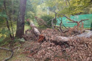 妙琴公園内において、松くい虫の被害による枯れ松が倒木したことを受け、安全確保のた…