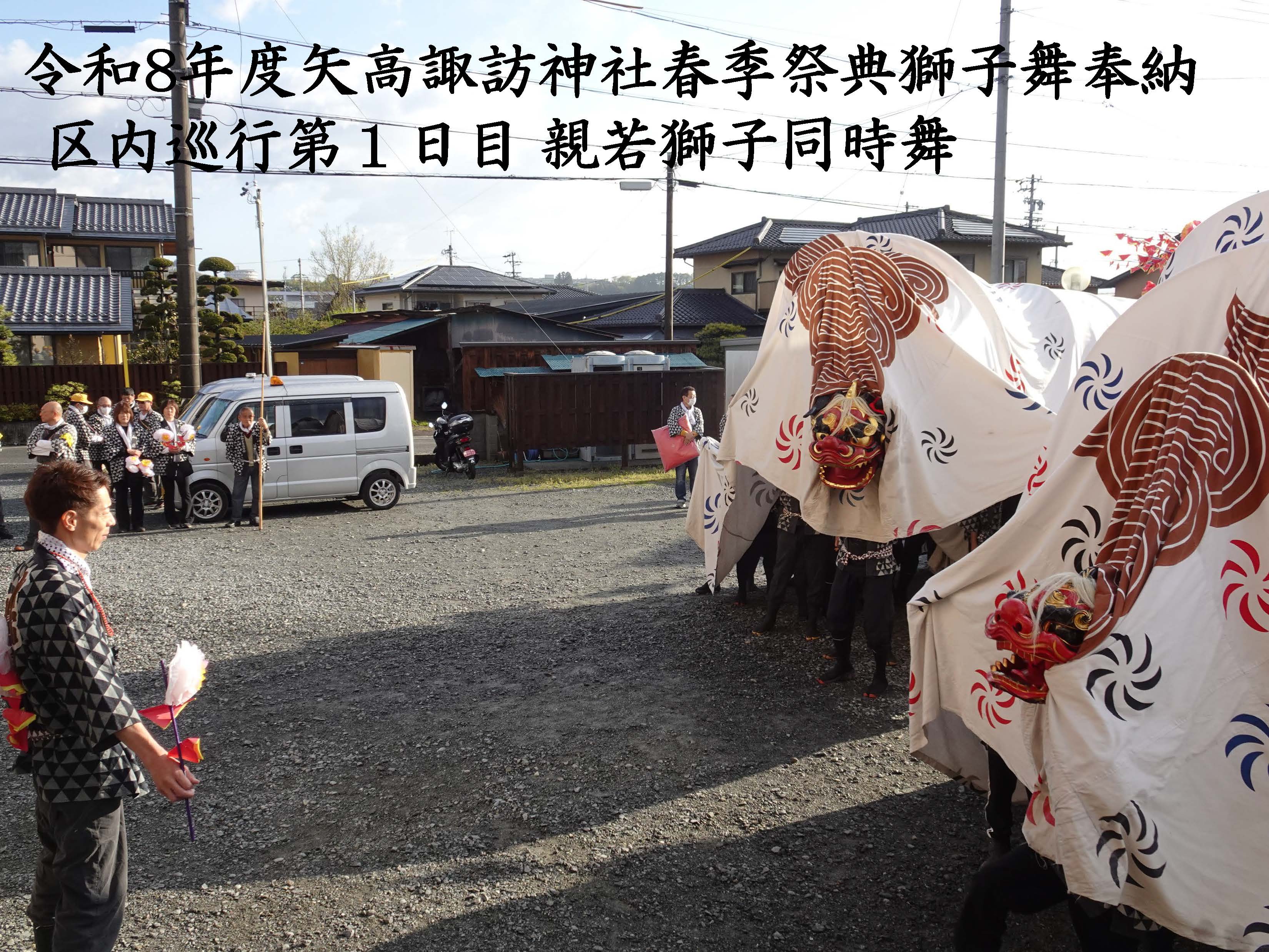 令和8年度矢高諏訪神社春季祭典獅子舞奉納 区内巡行 第1日目