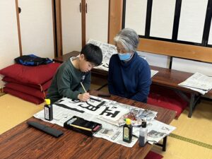 そして、今回初めての取り組みとなる『書き初め教室』も開催しました。