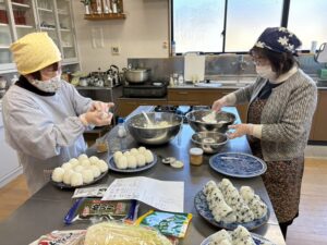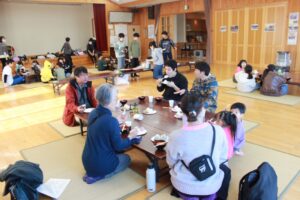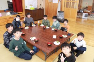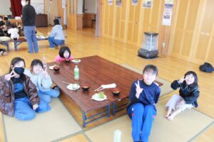 お昼は、地域ボランティアさんが40人分のすまし汁と80個のおにぎりを作ってくださり、皆んなで美味しくいただきました。