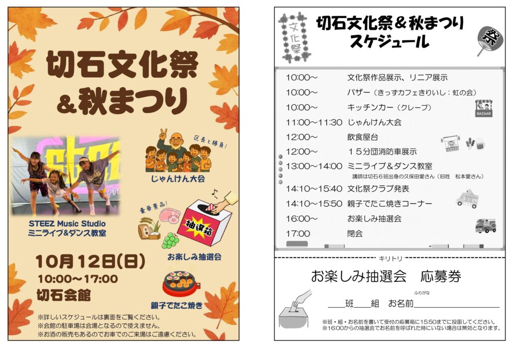 10月12日(日)、晴天のもと、切石文化祭&秋まつりが切石会館にて開催されました。