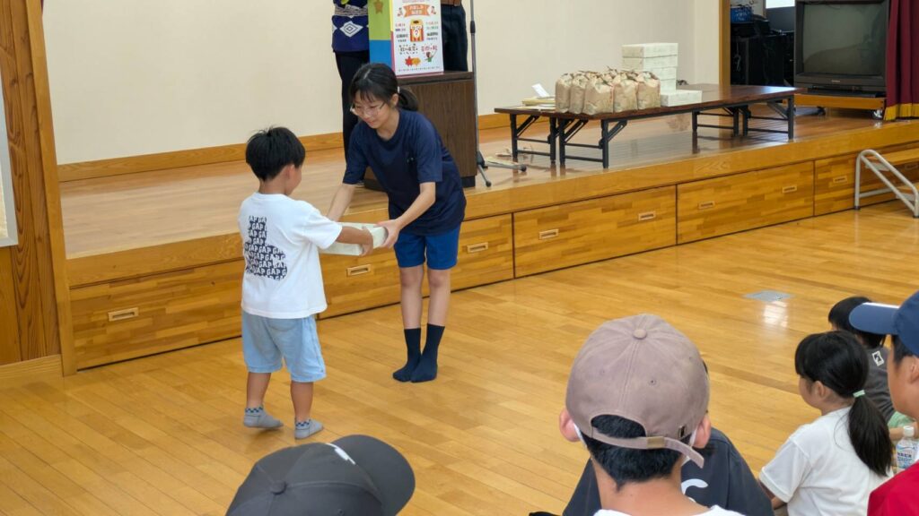 鼎中ボランティアとして切石3班の村澤夏穂さんが受付を担当