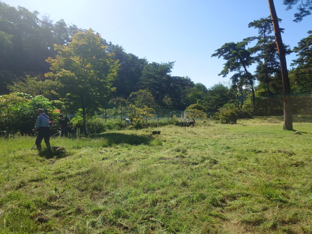 公園閉鎖中は妙琴公園愛護会による草刈り作業も中止していましたが、荒れ放題では却ってクマを呼び込む原因になるため、9/21(日)の午前中に愛護会会員、愛護会協力団体の総勢35名が集まり草刈り作業を実施しました。