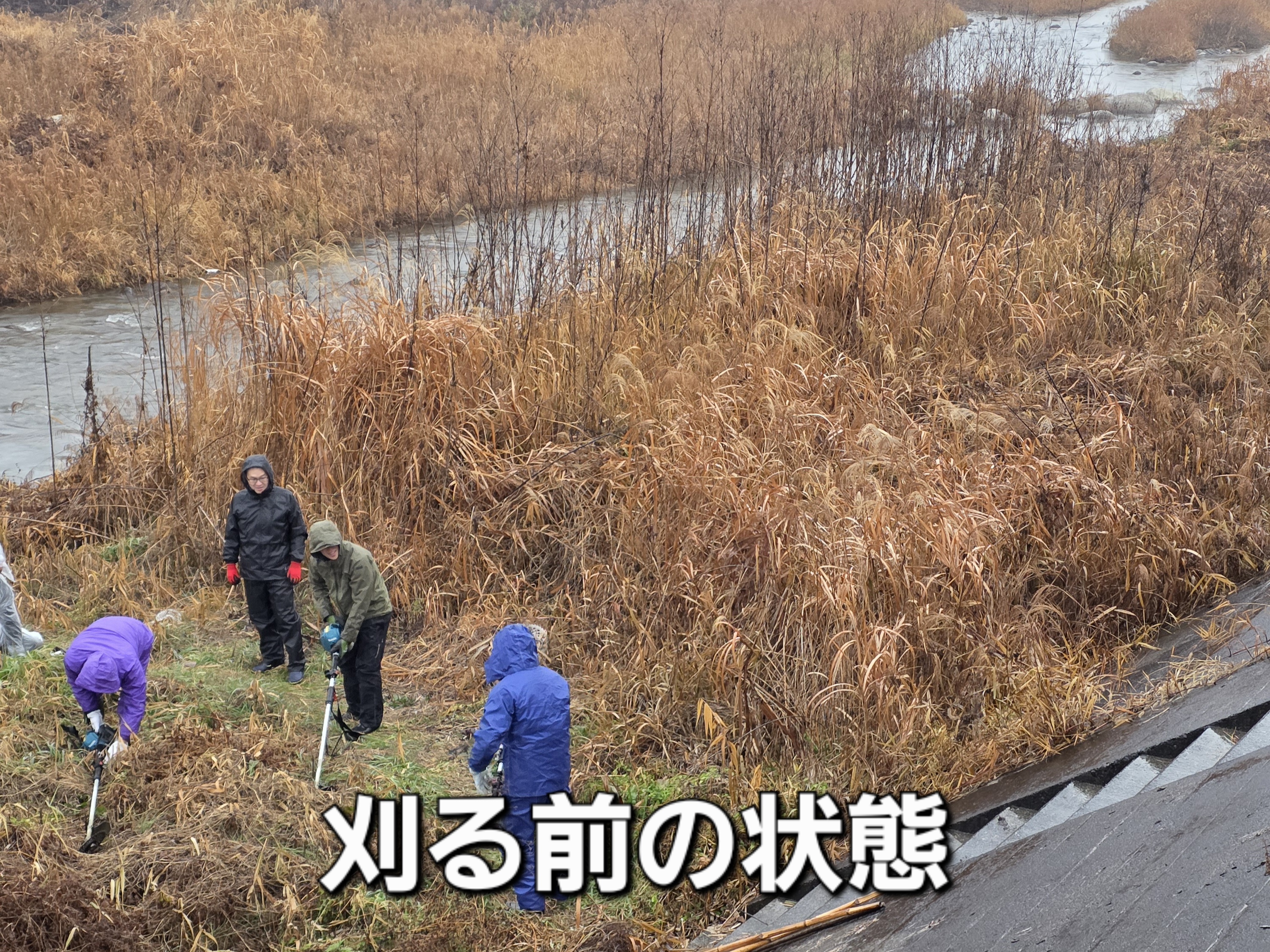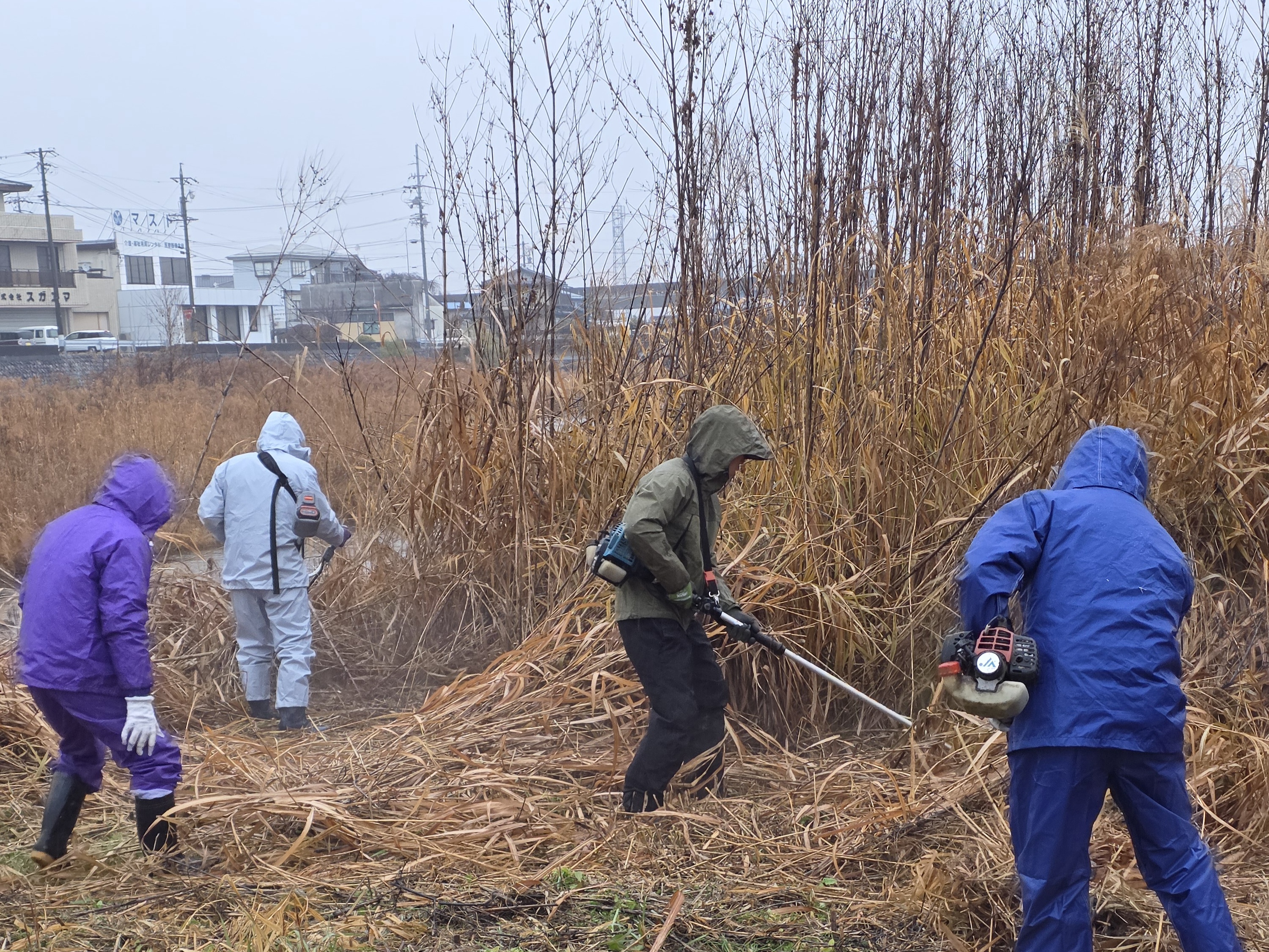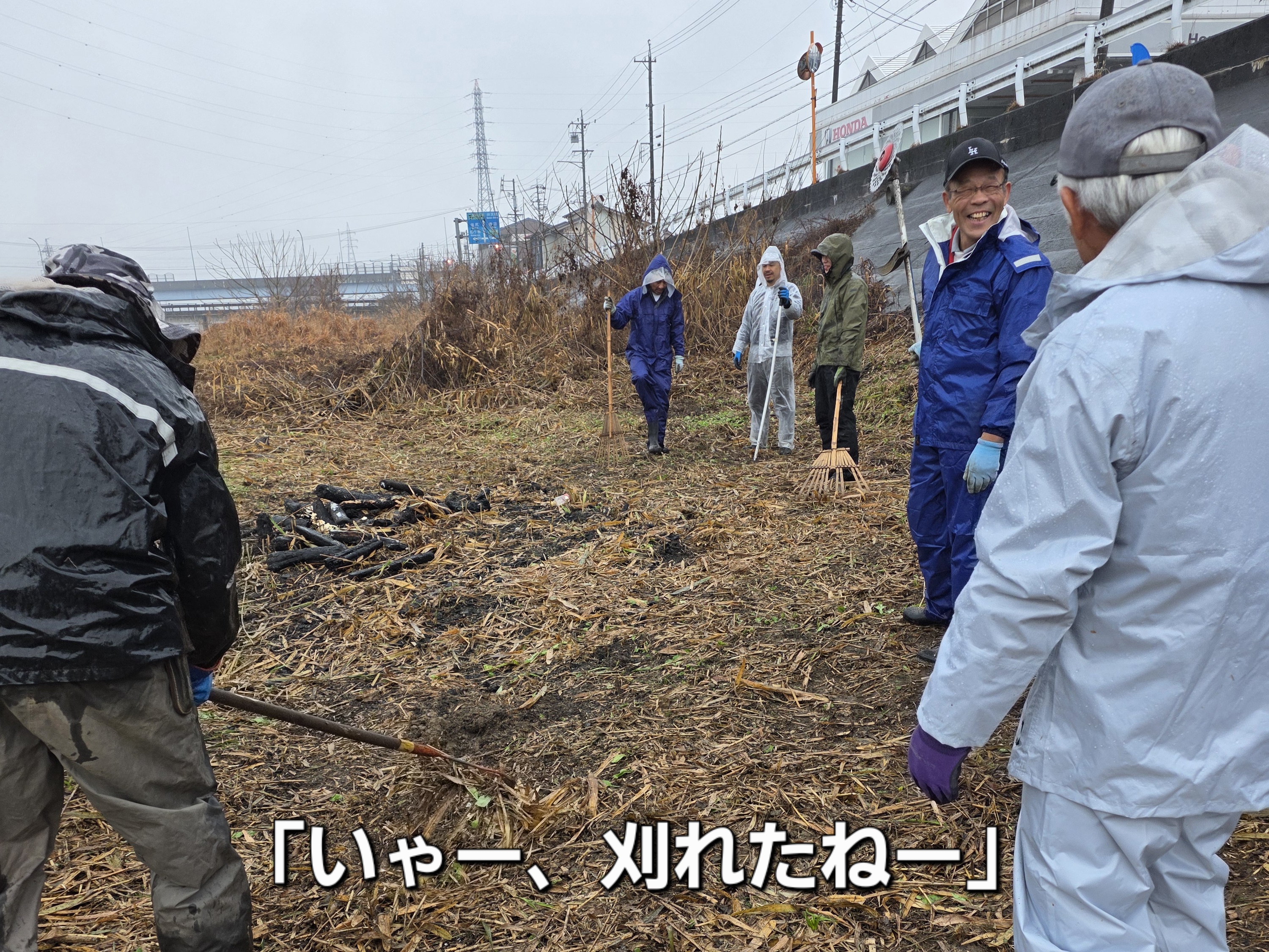 12月14日(日)朝8時30から、令和7年度東鼎どんど焼会場の下準備で下草刈りを行いました。
