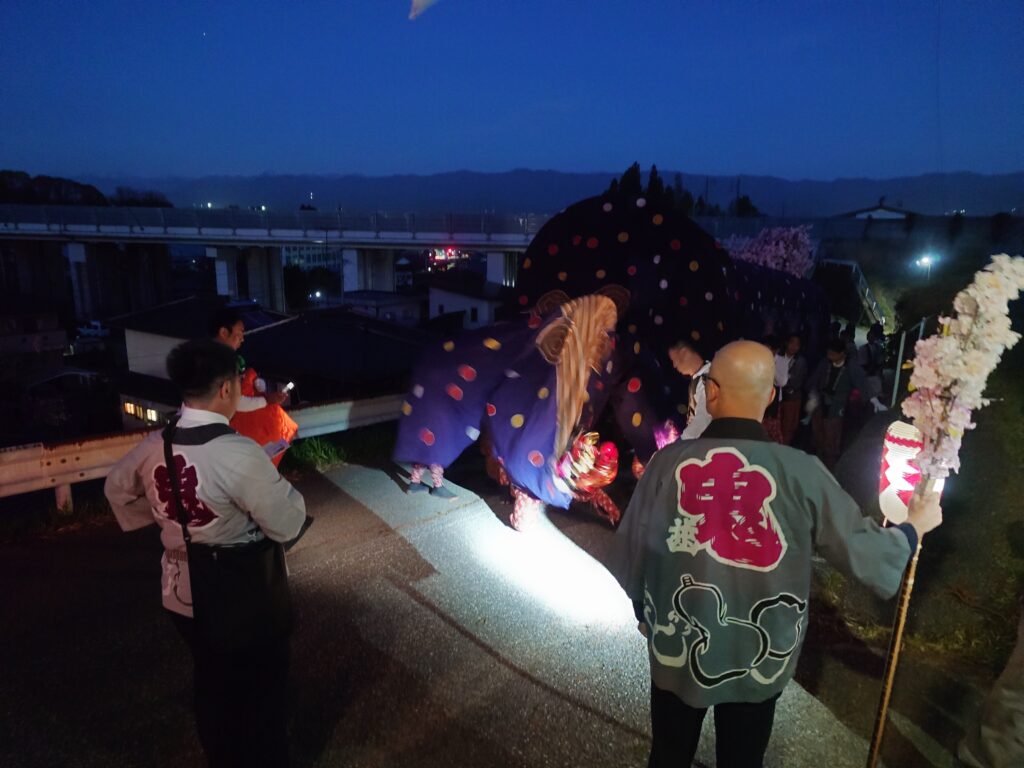 令和8年4月11日(土)、五穀豊穣と切石区内の安全を祈願し、天伯八幡神社春季祭典獅子舞宵祭りが行われました。