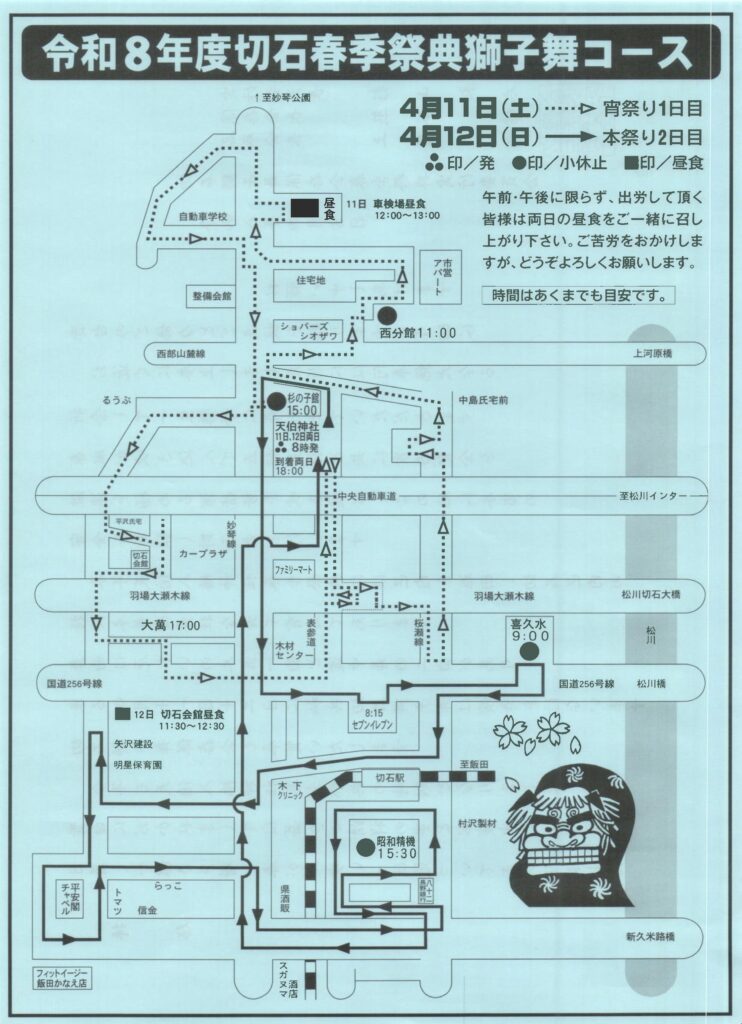 笛や太鼓の音に合わせて勇壮かつ華やかな舞が披露され、切石区の人々を魅了しました。
